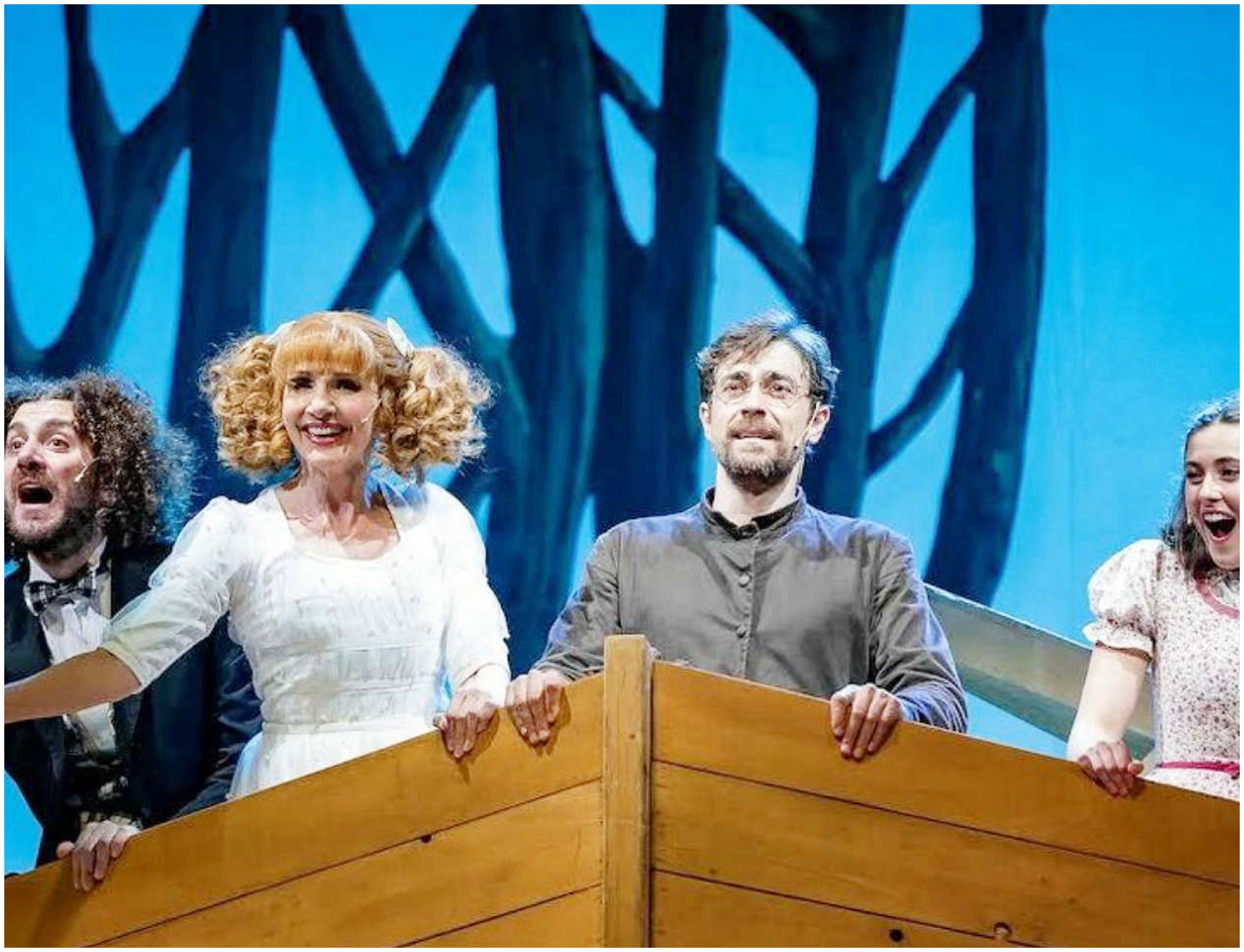 Il cast di quest’edizione non presenta novità e continua a sorprendere con le sue performance potenti. Giovanni Scifoni torna nei panni di don Silvestro, il prete scelto da Dio per guidare la costruzione di una nuova Arca. L’affascinante Sofia Panizzi interpreta Clementina, una giovane innamorata del parroco, in questa storia che mescola comicità e riflessione. Lorella Cuccarini, ormai una presenza fissa nella commedia, assume il ruolo di Consolazione, una prostituta con un nome che parla da sé. Due artisti dalla forte carica scenica che riportano in vita l’atmosfera nostalgica e dinamica di uno dei musical più iconici della storia italiana.