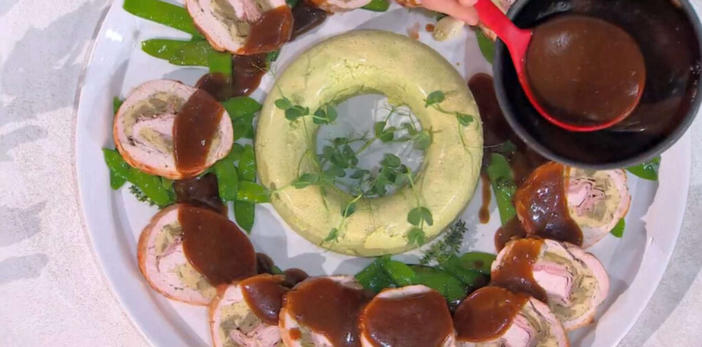 L’arrosto di tacchino su flan di piselli è un piatto che unisce eleganza e sapore, perfetto per una cena speciale