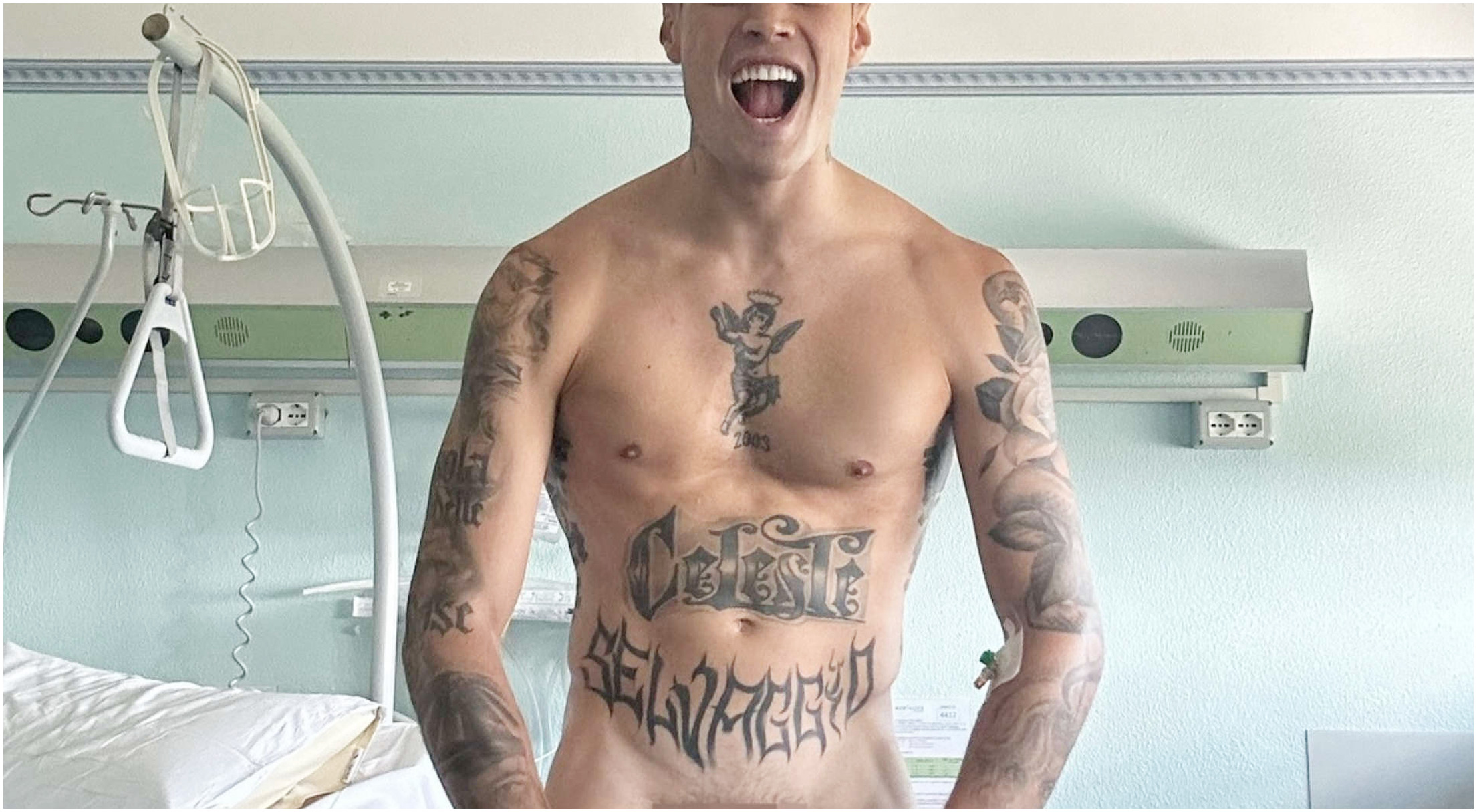Nello scatto condiviso, Blanco appare completamente nudo all’interno di una stanza d’ospedale, con i suoi tatuaggi a coprire la pelle e le parti intime censurate. La sua posa ricorda quella di un culturista, mentre un braccialetto tipico dei pazienti abbellisce il suo polso. Sullo sfondo, si intravedono alcuni indumenti e un letto disordinato, creando un’atmosfera che cattura l’attenzione di chi osserva. Questa rappresentazione audace ha generato un immediato dibattito tra i fan e gli esperti di gossip.