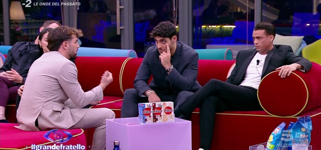 Tensioni al Grande Fratello 2025: Lorenzo Spolverato e Helena Prestes in conflitto, con Javier Martinez che difende la sua relazione.