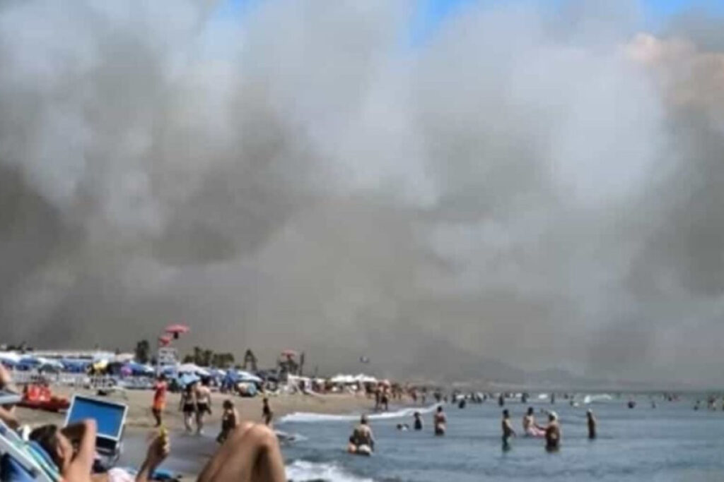 Incendio nella pineta di Baia Domizia: fumo denso e evacuazioni in corso. Turisti e residenti in allerta. Scopri gli aggiornamenti.